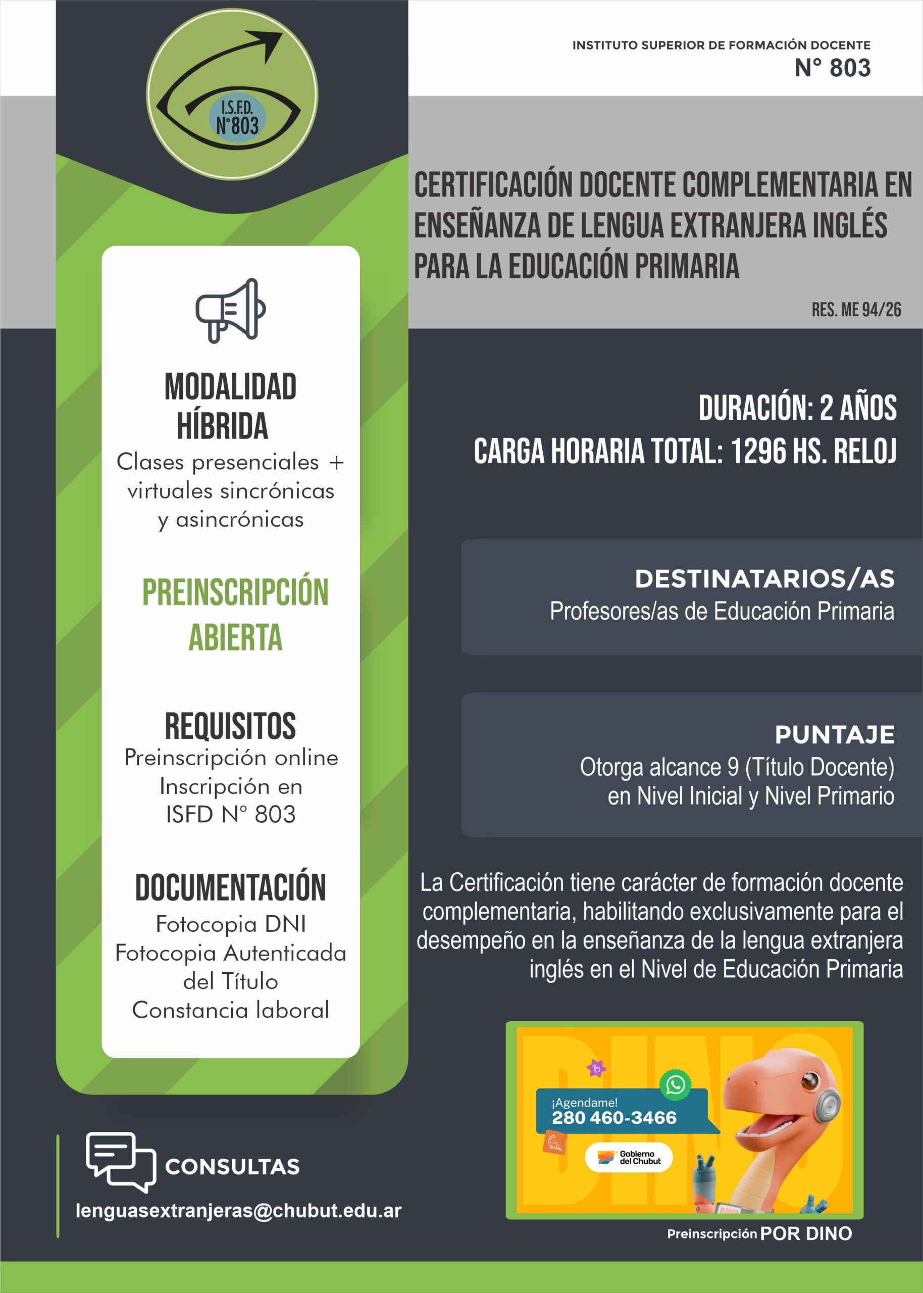 Certificación Docente Complementaria en Enseñanza de Lengua Extranjera Inglés para la Educación Primaria 16 marzo, 2026 por Nicolás Rodríguez
